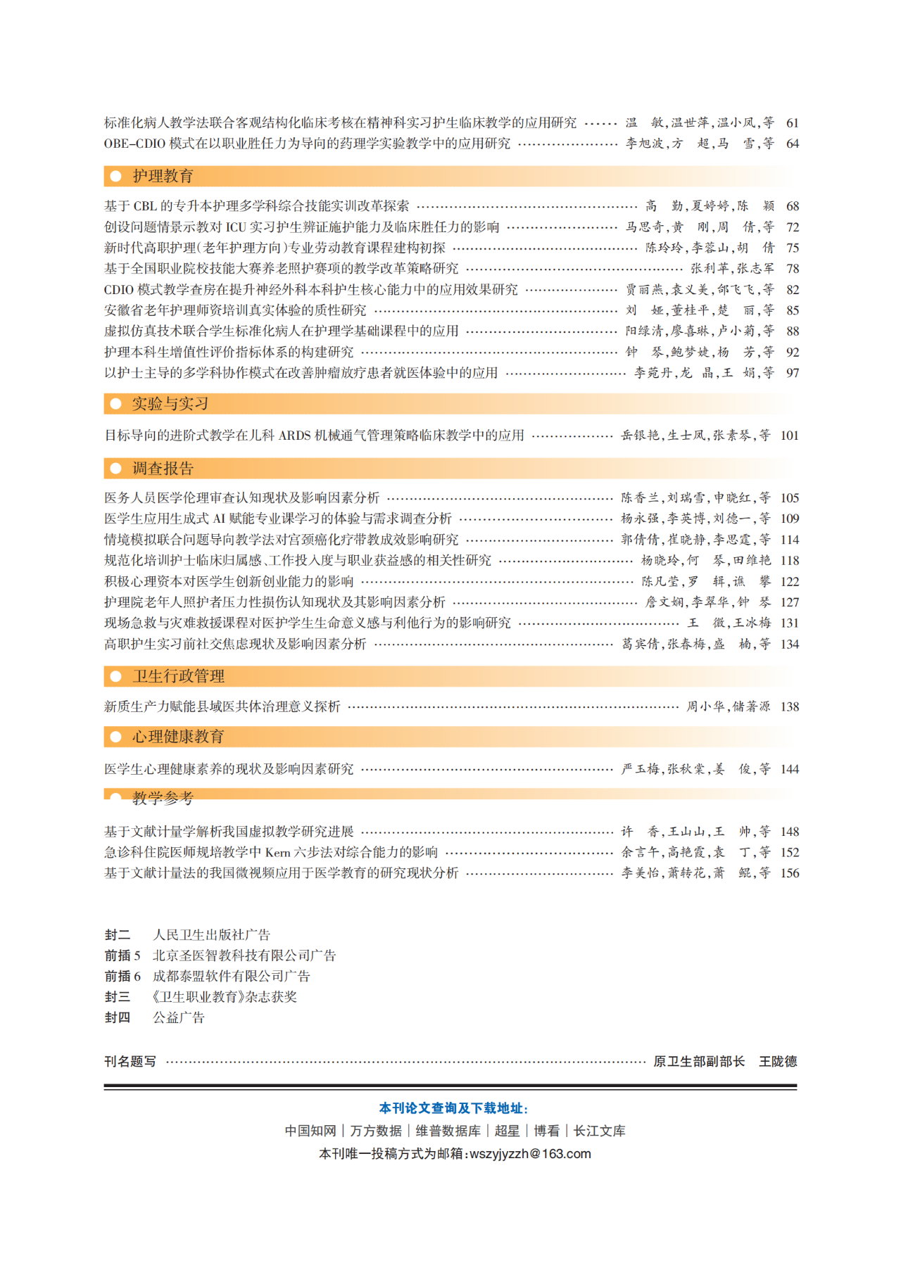 《卫生职业教育》2025年第20期封面目录