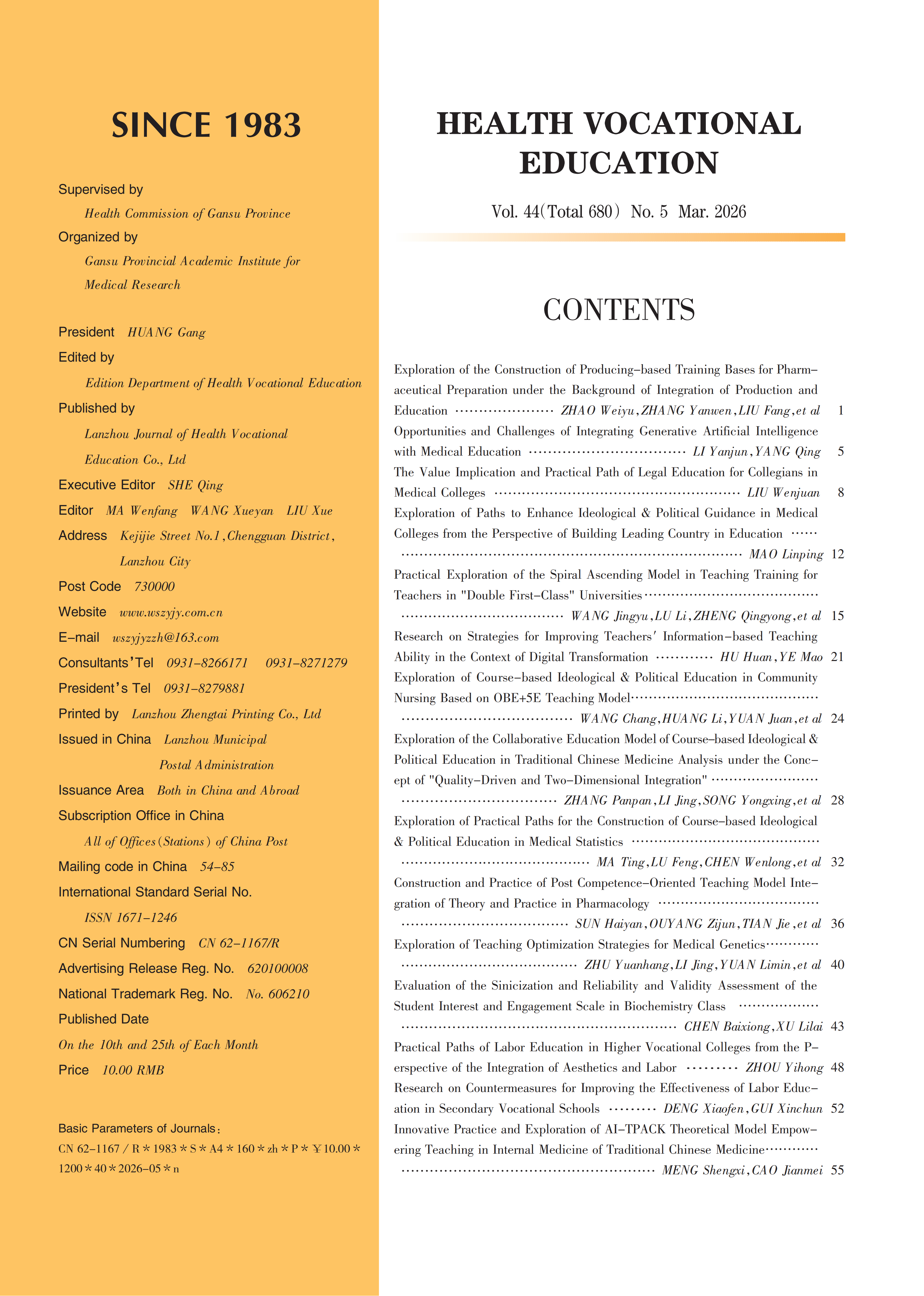 《卫生职业教育》2026年第5期封面目录