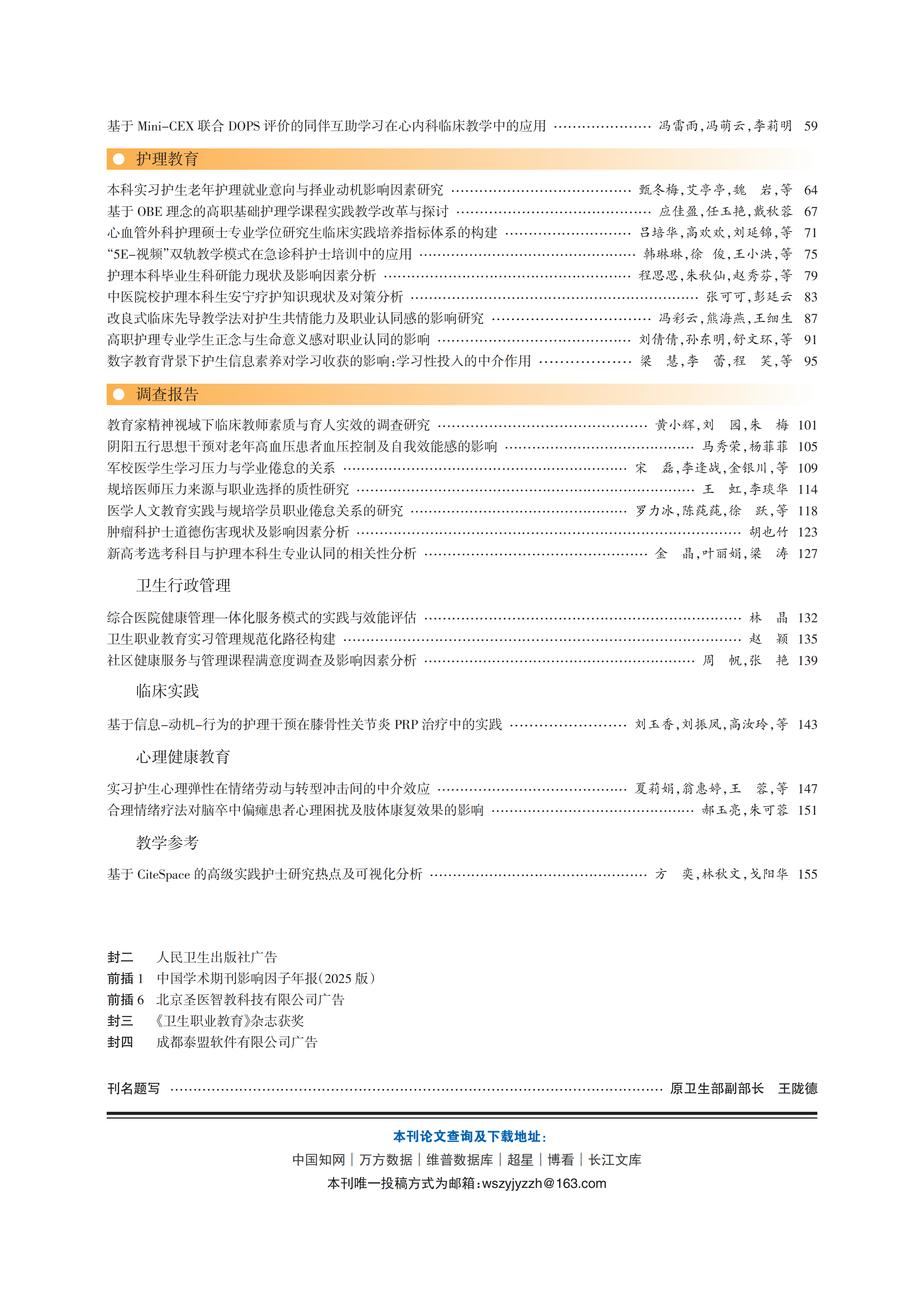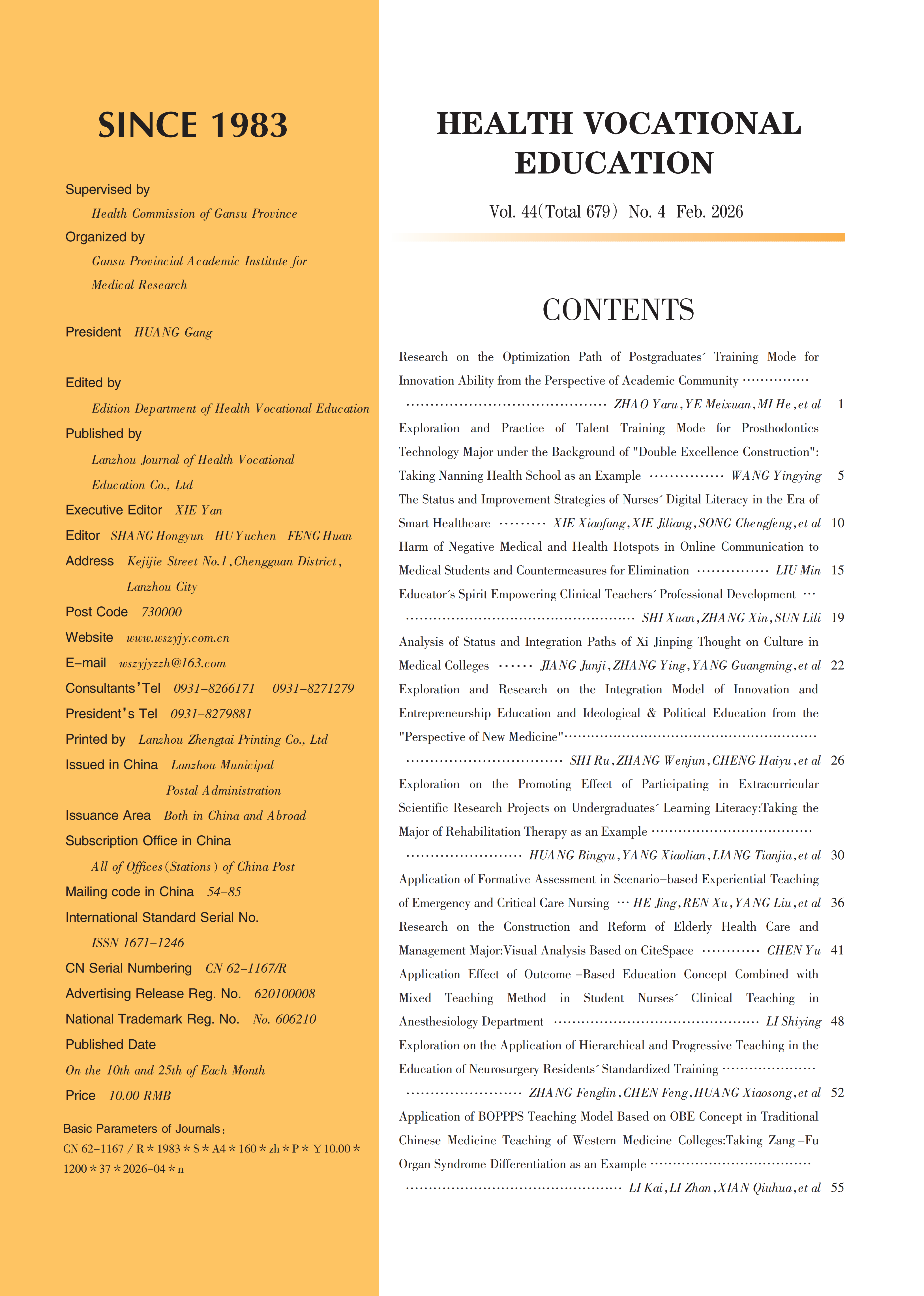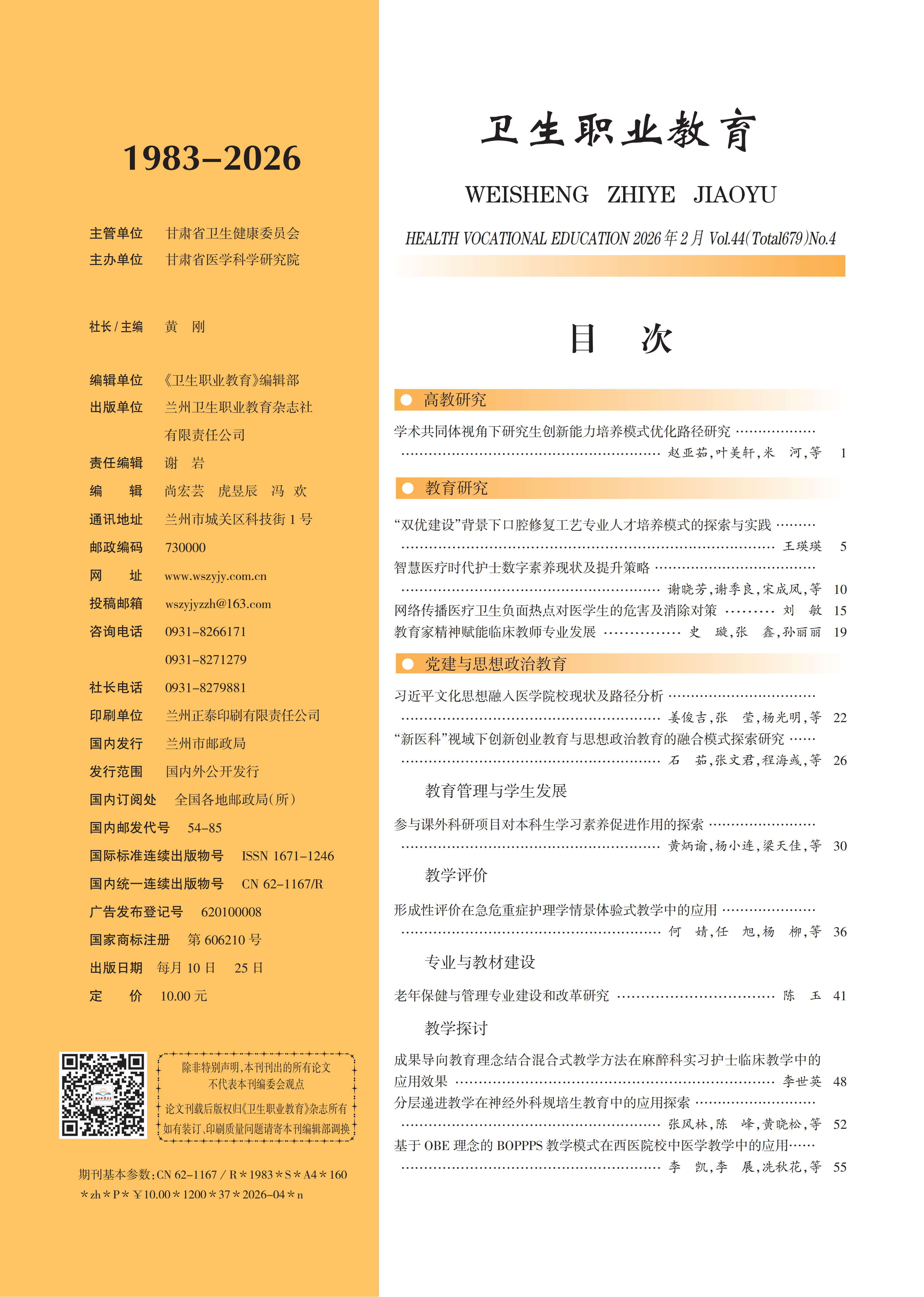《卫生职业教育》2026年第4期封面目录