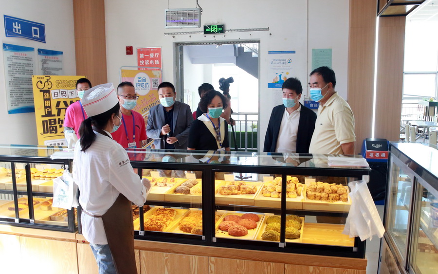 张晓东一行实地察看了学校南门、新生报到点、食堂等重点部位的疫情防控工作,同时,听取了校领导关于学校新生开学报到、疫情防控、校园安全的工作汇报。