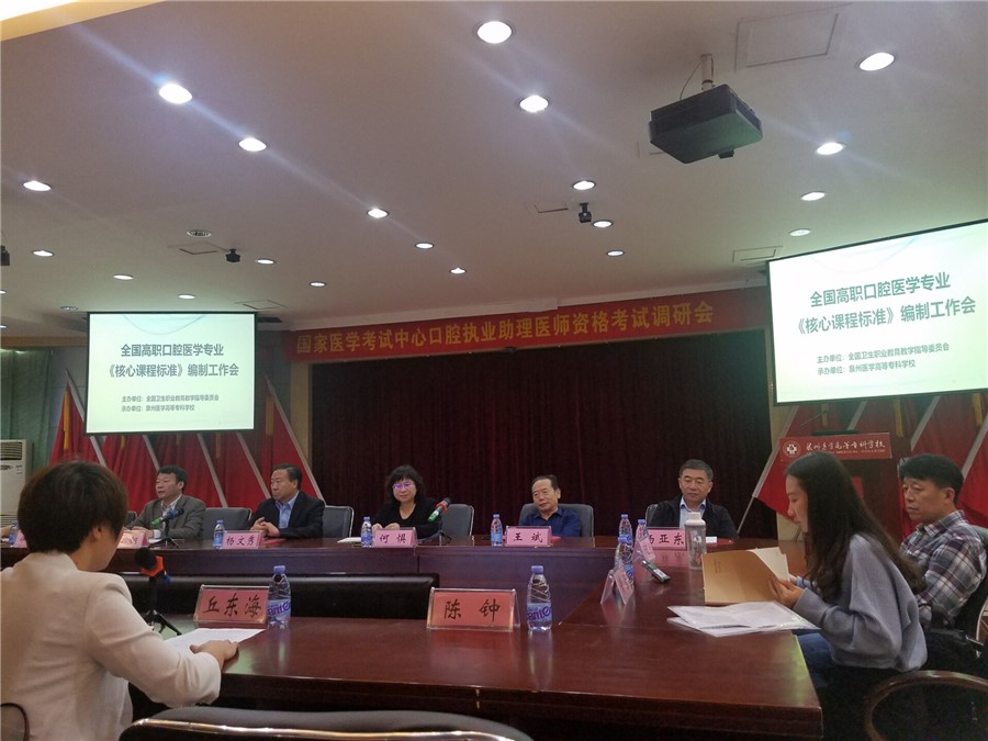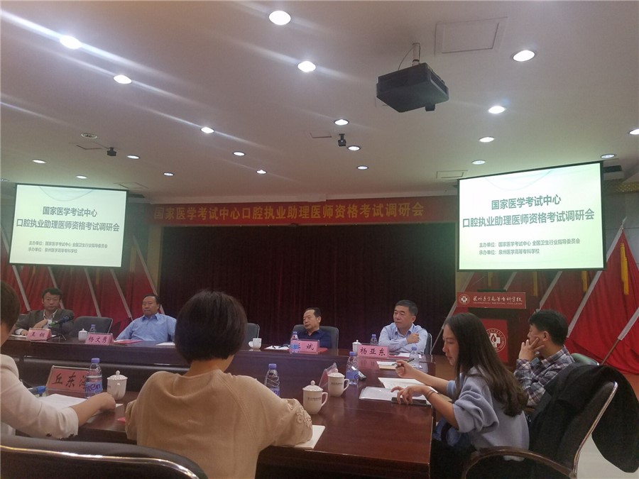 17日上午的大会由泉州医学高等专科学校口腔医学系主任丘东海主持会议。会上,泉州医学高等专科学校苏成安校长做了大会致辞,他指出本次会议的两个议题对于口腔医学专业的发展具有重要意义,学校是人才培养的大本营,口腔执业助理医师资格考试是学校人才培养质量考核的重要指标;国家医学考试中心何惧副主任、全国卫生职业教育教学指导委员会秘书长杨文秀分别做了专题讲话;国家医学考试中心王刚处长做了主题为《我国口腔类别执业医师考试二十一年工作基本情况回顾》的讲座。他以执业资格考试的准入基本要求和考试大纲的演变过程为线索,结合考生学历情况,深入地阐述了执业资格考试对学校人才培养的指导意义,并对下一步考试改革的方向进行了简要的解读;厦门医学高等专科学校赖颖真副教授做了《口腔职业助理医师准入基本要求与考试评估研究》课题汇报,该课题构建了口腔医学专业专科生“岗位胜任力”模型,并进行了反复的论证和全国范围内的调研,以期为口腔执业助理医师准入及考试改革提供建议。