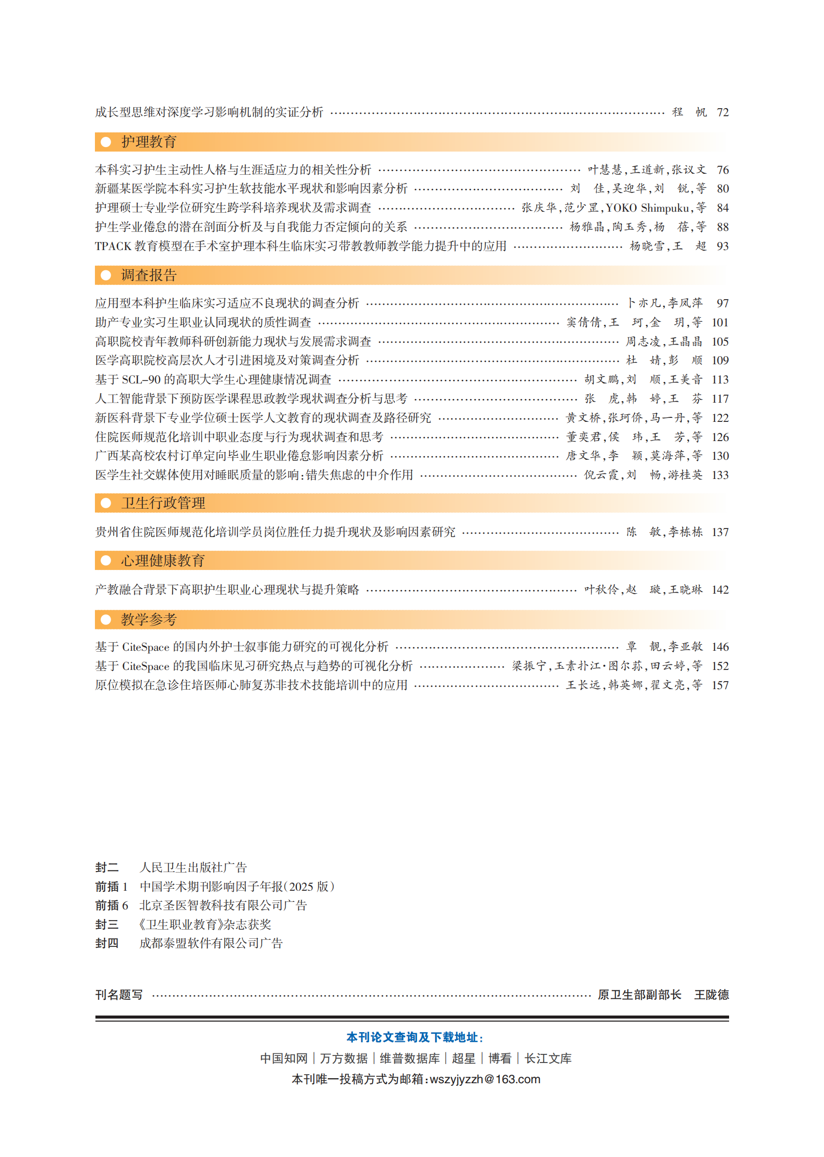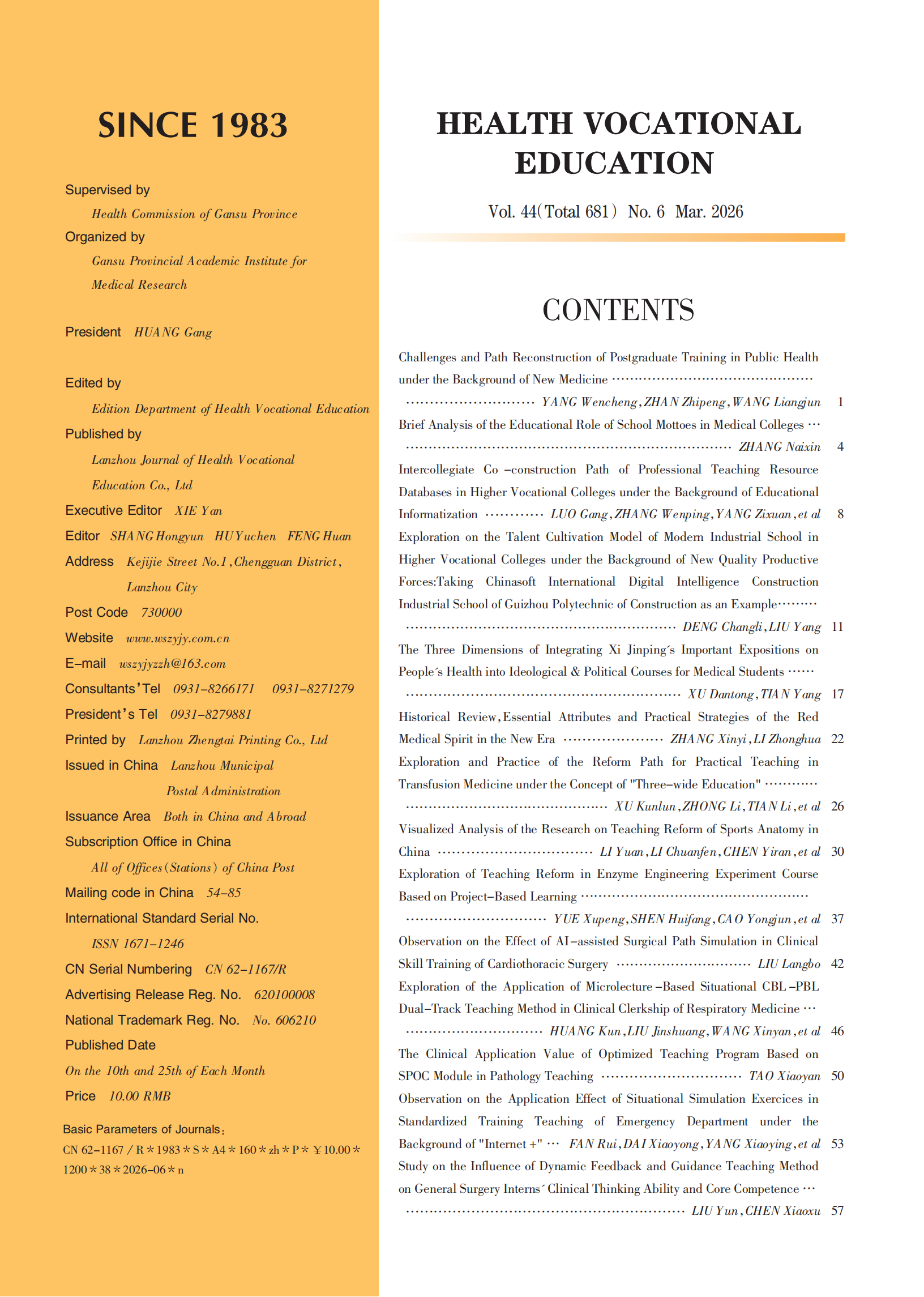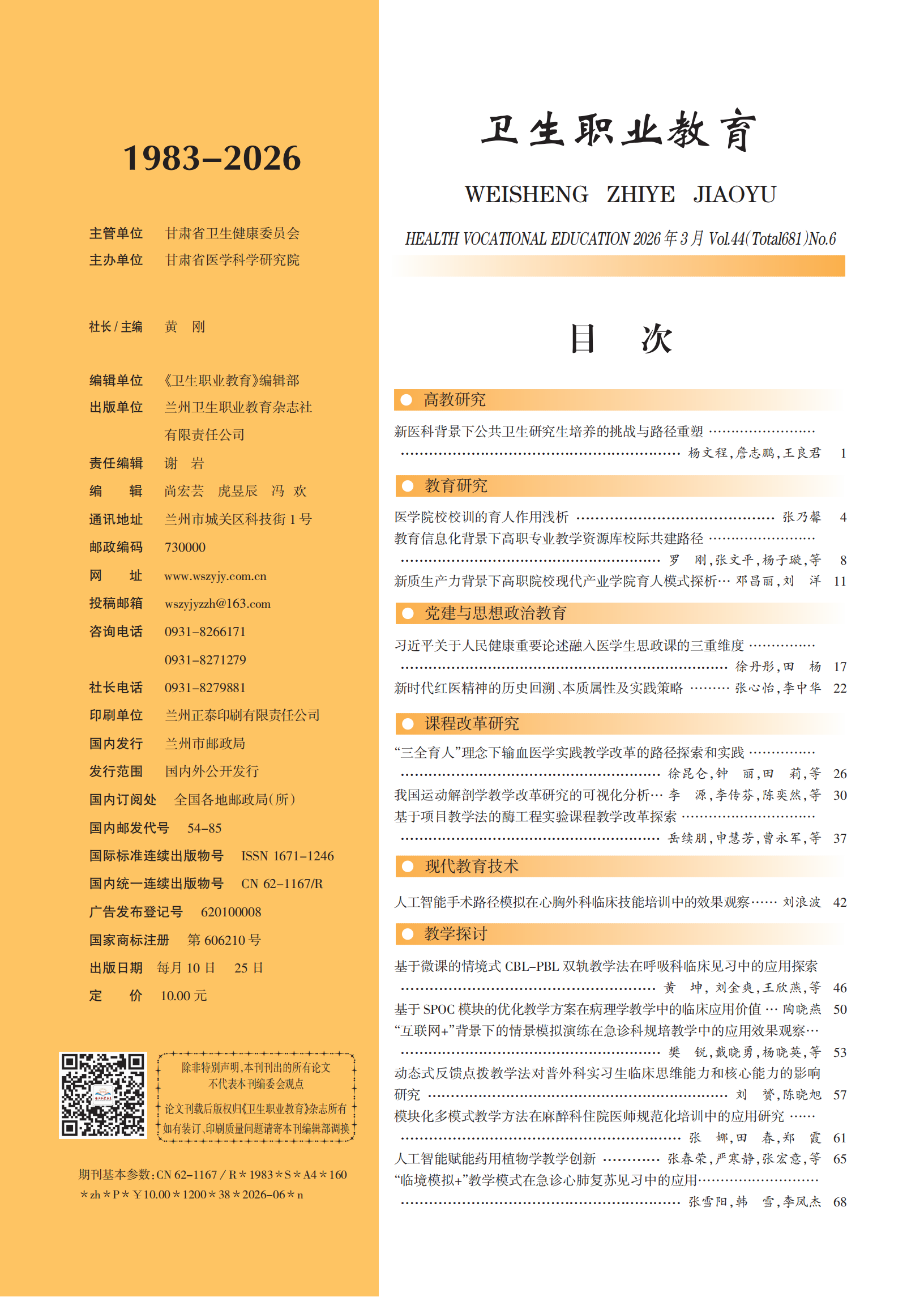 《卫生职业教育》2026年第6期封面目录