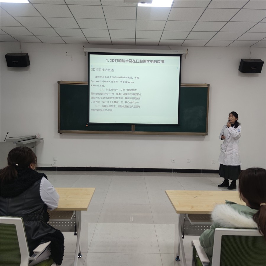 “2020年职业院校教师素质提升计划培训项目——高职3D打印技术‘双师型’教师专业技能培训班”由国家教育部、财政部举办,由上海第二工业大学承办。暑假期间,学院口腔教研室教师马晓丽、郭艳玲两位老师参加了培训班学习。报告会上,马晓丽老师交流分享了此次培训的经历、体会与收获。她首先介绍了此次培训的学习内容和参观活动情况,重点就3D打印技术及在口腔医学中的应用,虚拟现实技术及在教育教学中的应用进行了汇报。之后,向大家分享了此次培训学习的感悟和收获,通过对目前新理论、新理念、新知识的学习,丰富了自身的知识内存,开拓了思维,开阔了眼界。通过学习,一方面是对授课素材的有益补充,在教学中,将所学的有关3D打印、虚拟现实技术、计算机辅助设计与计算机辅助制造(CAD/CAM)等内容结合所授课程介绍给学生,启发学生开拓思路、与时俱进,另一方面也丰富了授课形式,将不同的教学方式引入自身的授课活动中,在教学中重视团队协作及学生思维的拓展,让学生体会到不一样的上课方式。第三方面也体会到不断学习对教师个人成长的重要性,希望今后能够多参加这样的学习和培训,不断提高自己的教学水平,为积极推动学院的教学质量和办学水平而努力。