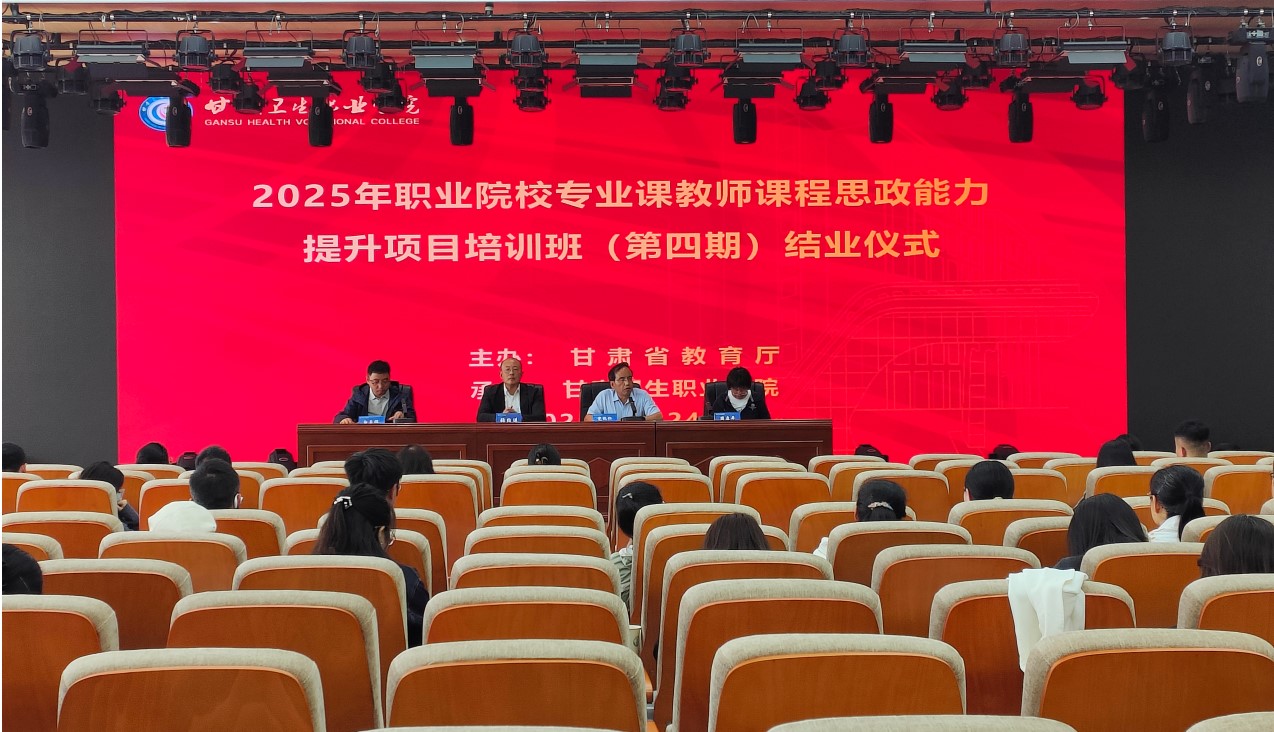 2025年9月24日,由甘肃省教育厅主办、甘肃卫生职业学院承办的“2025年度甘肃省职业院校专业课教师课程思政能力提升项目培训班”顺利完成全部四期培训,圆满结业。在第四期结业仪式上,学院党委委员、副院长党纯仁出席并致辞,来自全省50所职业院校的100名学员共同参加。9名优秀学员代表结合培训内容,现场分享了教学案例与学习感悟。仪式上还对优秀学员予以表彰。