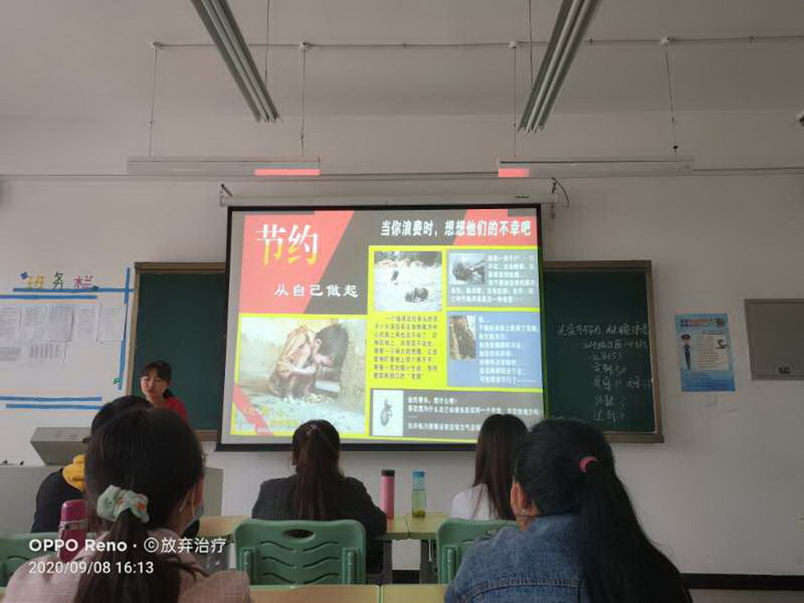 为深入贯彻落实习近平总书记关于“坚决制止餐饮浪费行为,切实培养节约习惯”的重要指示精神,引导广大团员青年杜绝浪费粮食,养成节约习惯,传承中华美德,营造“浪费可耻、节约光荣”的良好氛围,9月8日下午,校团委组织在校班级团支部以及学生社团全体团员开展了“制止餐饮浪费,倡导节约用餐”的团日活动。活动由各团支部书记和社团负责人主持。活动中,由学生代表宣读我校制止餐饮浪费、倡导节俭用餐倡议书,倡议全体学生:厉行节约,争做爱粮节粮的倡导者;理性消费,争做爱粮节粮的践行者;率先垂范,争做爱粮节粮的宣传者。坚决制止餐饮浪费行为,切实培养节约习惯,用实际行动为国家、为社会、为学校、为家庭奉献力量。