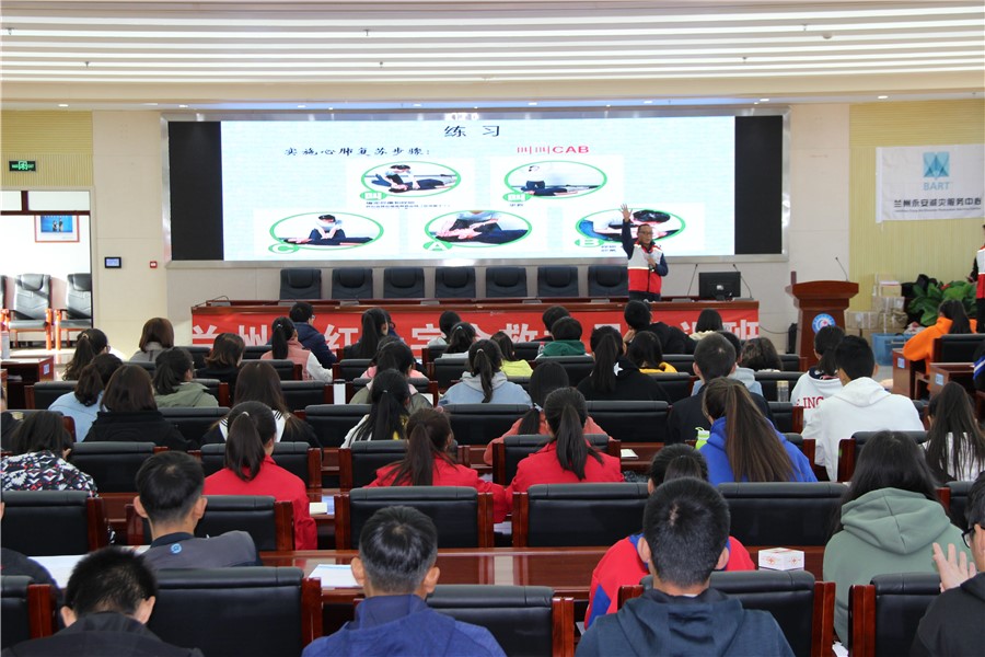 本次培训分为五期,每期培训为8学时,累计共有500余人参加。培训以理论知识与实际技能相结合的方式对学员进行了详细讲解,如心肺复苏、创伤救护(止血、包扎、骨折固定、搬运)等,并现场示范了上述操作。培训内容结束后,兰州市红十字会工作人员对学员进行了理论知识和实践操作考核,向考核合格的学员颁发了红十字救护员证。