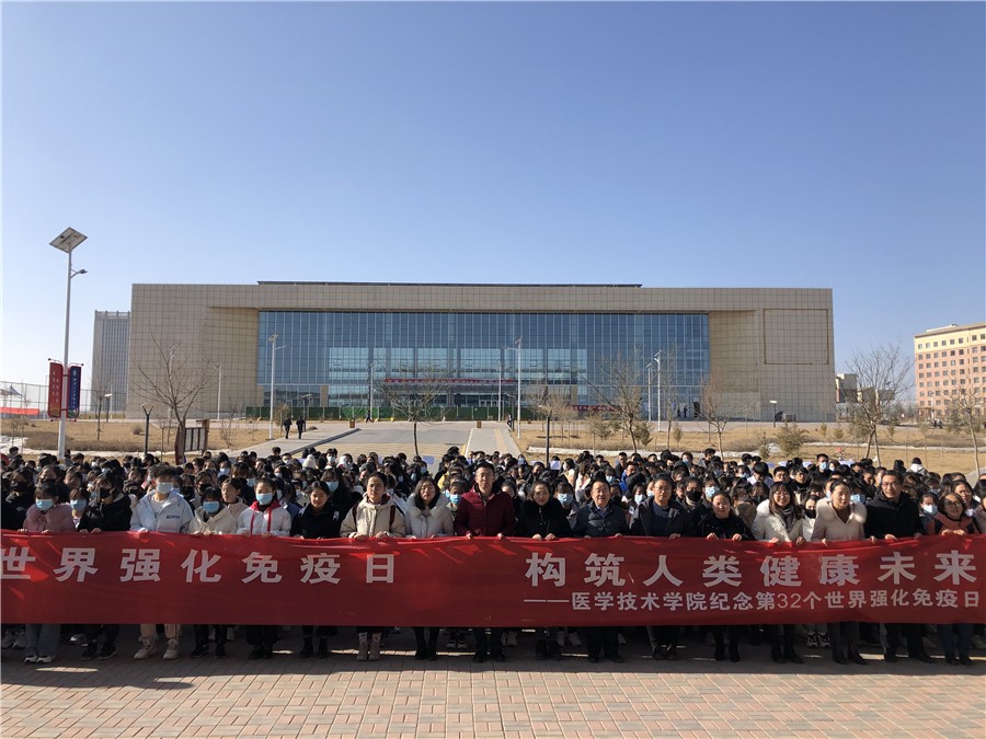 12月15日中午,医学检验系全体师生在学校广场举行了2020年“世界强化免疫日”系列活动启动仪式暨集中宣讲会。学院院长张志钢、党总支书记王义安、医学检验系全体教师及学生400余人参与了活动。仪式由王义安主持,吕荣光宣读了《医学技术学院关于开展第32个“世界强化免疫日”活动方案》,对系列活动的开展作了具体工作安排和要求,司文金老师做了“世界强化免疫日、构筑人类健康未来”的宣讲报告,向同学们介绍了“世界强化免疫日”活动的起源、背景以及开展的意义。张志钢总结讲话时希望同学们以“世界强化免疫日”系列活动为契机,结合当下新冠病毒肺炎疫情防控工作,向身处抗击新冠病毒肺炎一线的“检验人”致敬学习,以他们为榜样,刻苦学习专业知识,勤奋苦练专业技能,不断提升专业综合素质,成为合格的“检验人”,为早日就业打好基础,为人民群众的健康事业作出贡献。仪式结束前全体参会师生在印有“世界强化免疫日、构筑人类健康未来”横幅上进行了签名活动,强化了学生的专业思想和职业荣誉感。
