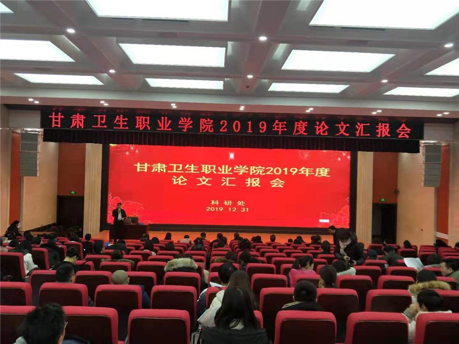 为增强我校学术研究,活跃学术氛围,2019年12月31日上午,科研处在一号教学楼学术报告厅召开甘肃卫生职业学院2019年度论文汇报会,康逢民副校长、黄刚副校长以及13位评审专家和全体专兼职教师参加会议,会议由科研处处长王一强主持。