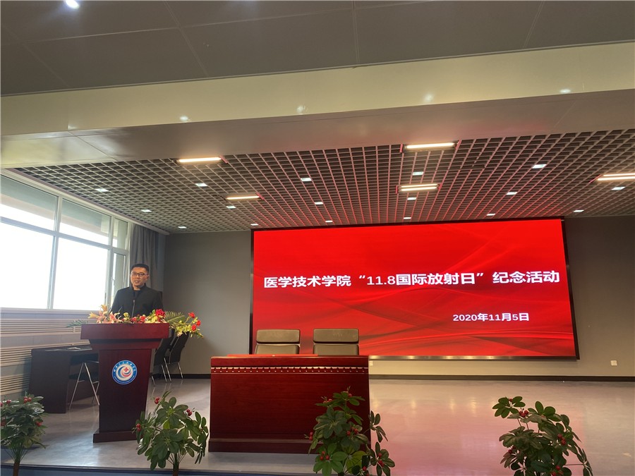 为了提高医学影像系学生的学习动力和对专业的热爱,强化对专业和未来岗位的认知,宣传医学影像人良好的精神风貌和社会责任,在“11·8国际放射日”来临之际,医学技术学院医学影像系组织开展了以“勤学苦练专业技能、勇担新时代影像人使命”为主题的纪念活动,并于11月5日在临床实训楼多功能厅举行了活动启动仪式,医学影像系全体师生近550人参加,仪式由2019级医学影像技术三年制15班学生秦聪聪主持。
