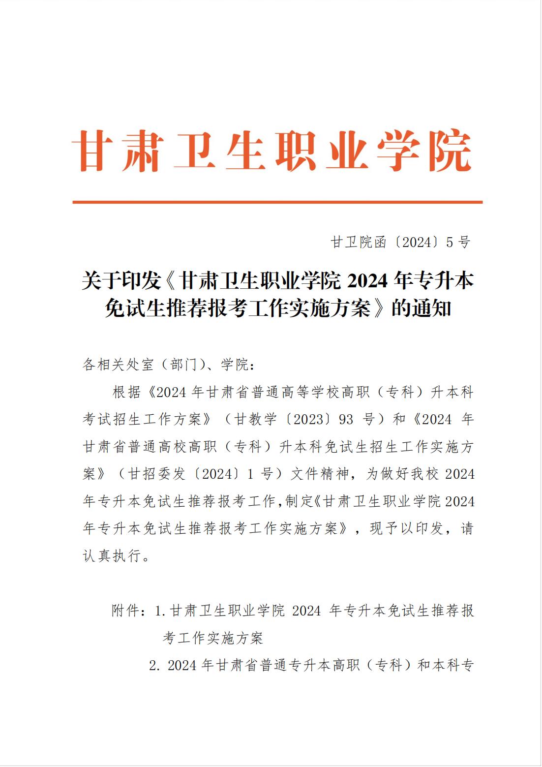 关于印发《甘肃卫生职业学院2025年专升本免试生推荐报考工作实施方案》的通知发布时间:2025-02-02